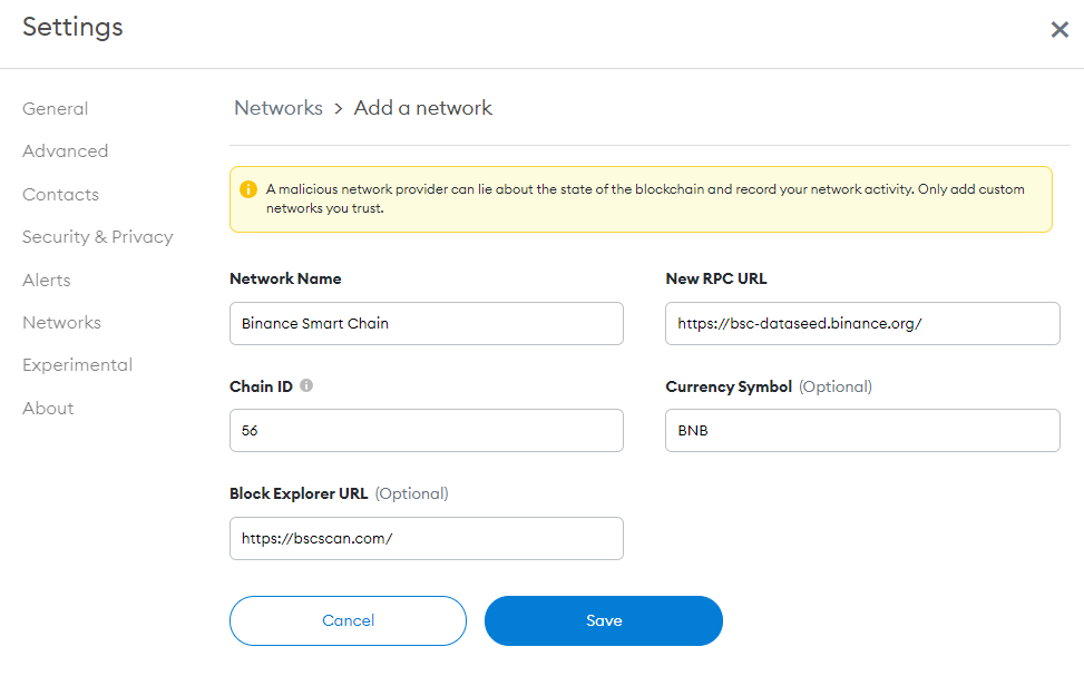 Step 3: Add BSC Network