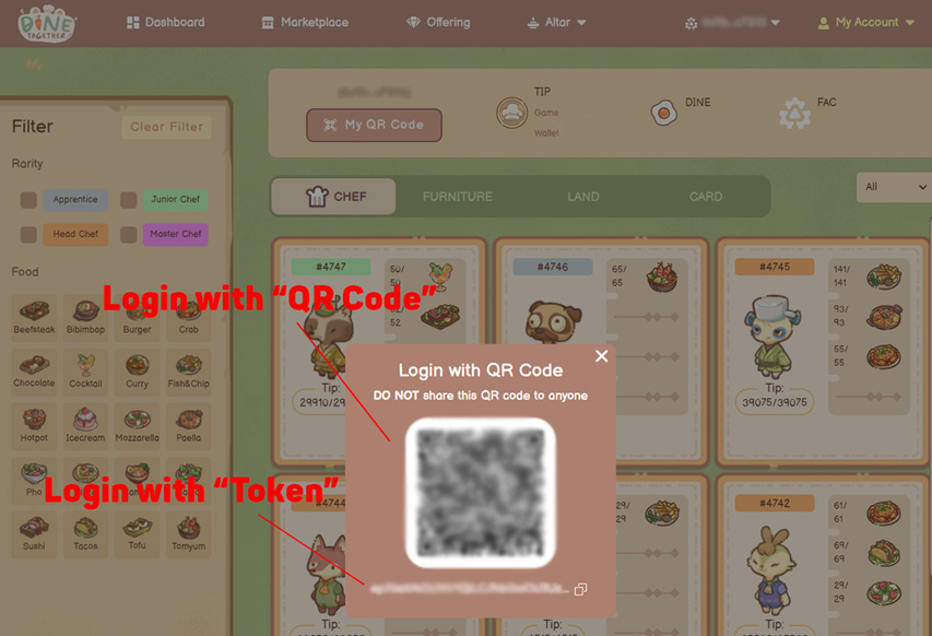 After completing PART 2, you will have 2 ways to log into Dine Together, which is to use “QR Code” or “Token”. As a suggestion for those who use emulators to play Dine Together, you should log in with “Token”, it might be easier for you.