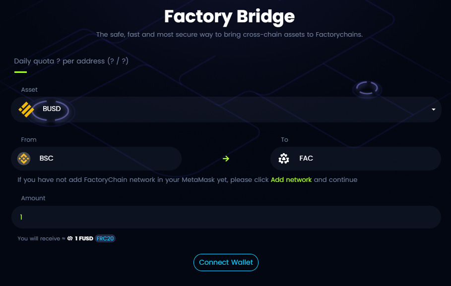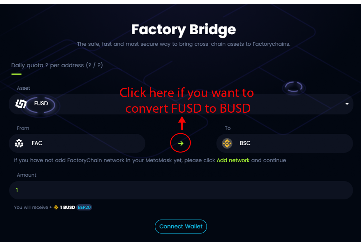 NOTES: Factory Bridge is also a place to convert FUSD to BUSD. In case you want to withdraw your money to BSC network on your Metamask.
