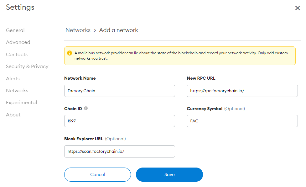 ▸Network Name: Factory Chain